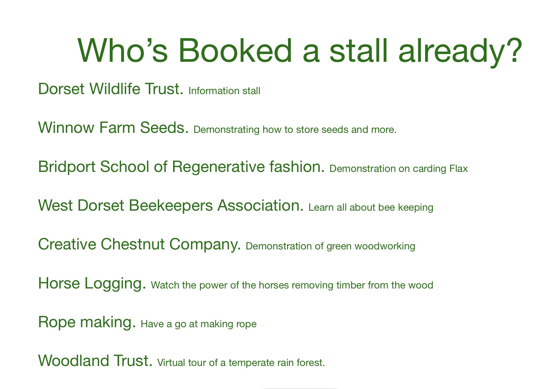 The Country fair will include stalls, speakers marquee, craft demonstrations and activities. We are inviting providers, stall holders, speakers, local musicians to email us giving some information on what you could provide for the festival, either on Friday, Saturday or both. In the coming months you will be able to reserve stall pitches, for a small fee. The speakers marquee, seems a very popular idea. I have already received two bookings. The 20 minutes slots will be on the hour and half hour, with a 10 minute change over period. Slots will be free of charge unless you are selling promotional material after your talk. You can reserve your slot now. to register an interest in taking part either on Friday and or Saturday, email allingtonhill@gmail.com.